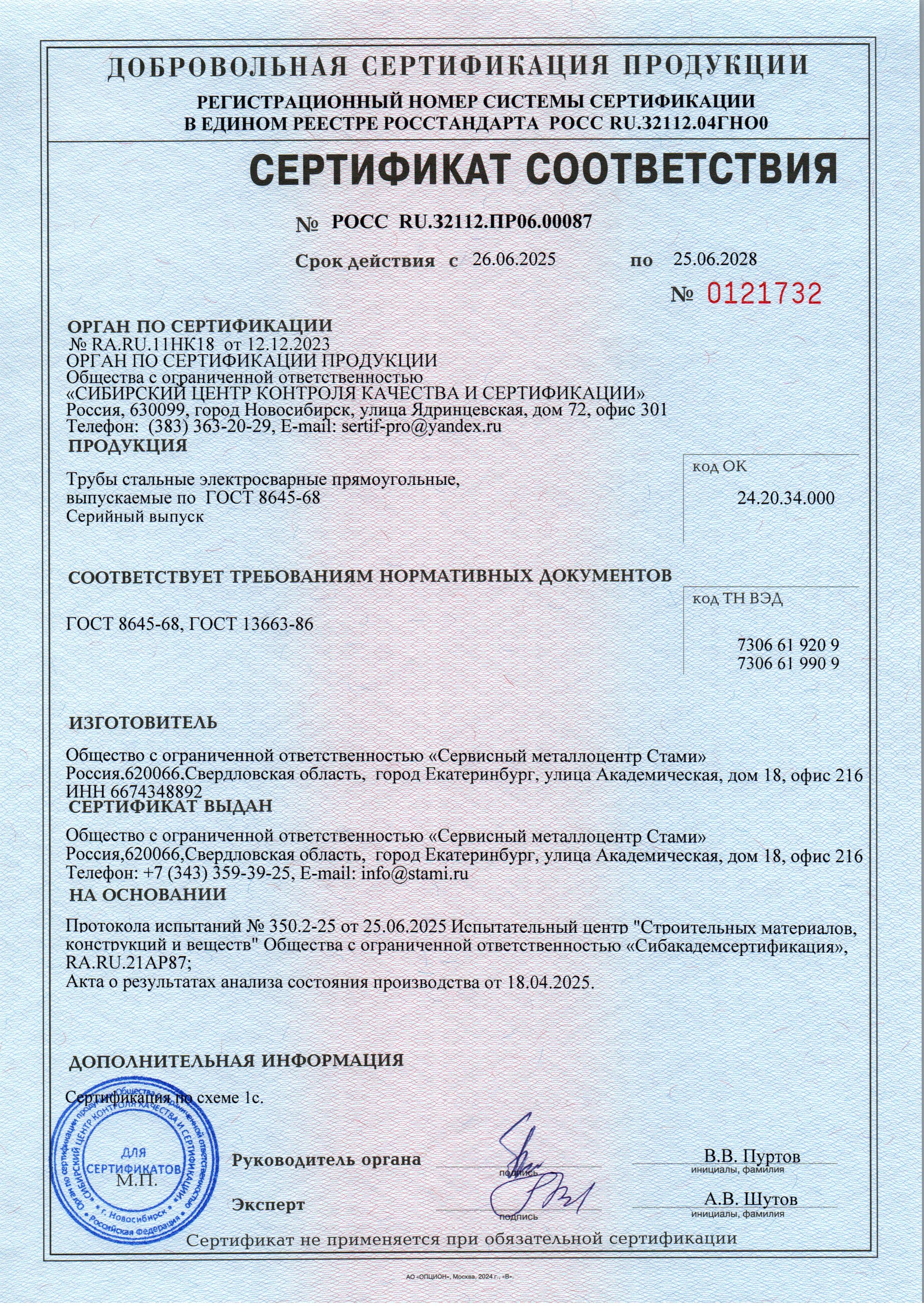 ООО «Сервисный металлоцентр «Стами» производит прямоугольную электросварную трубу 120 x 80 с высокой точностью резки из металла толщиной 5 мм и длиной до 12 метров. Под заказ труба электросварная 120 x 80 производится оптовыми партиями от 5 тонн. При наличии остатков на складе труба прямоугольная металлическая 120 x 80 продаётся со склада в Екатеринбурге. Так же электросварная труба 120 x 80 продаётся в г. Зеленоград по оптовым ценам, при значительной партии. Труба прямоугольная 120 x 80 доставляется автомобильным и железнодорожным транспортом заказчикам Урала, Сибири, Дальнего востока и в другие регионы РФ, а так же Казахстана. Труба прямоугольная 120 x 80 поставляется на металлобазы партнёров по всей территории РФ для дальнейшей доставки заказчикам в г. Зеленоград.